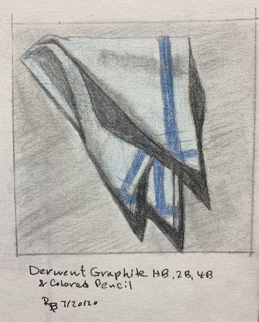 Draped Fabric – Graphite and colored pencil on paper (2020) – Jane Blundell Mastering Watercolors online class assignment.