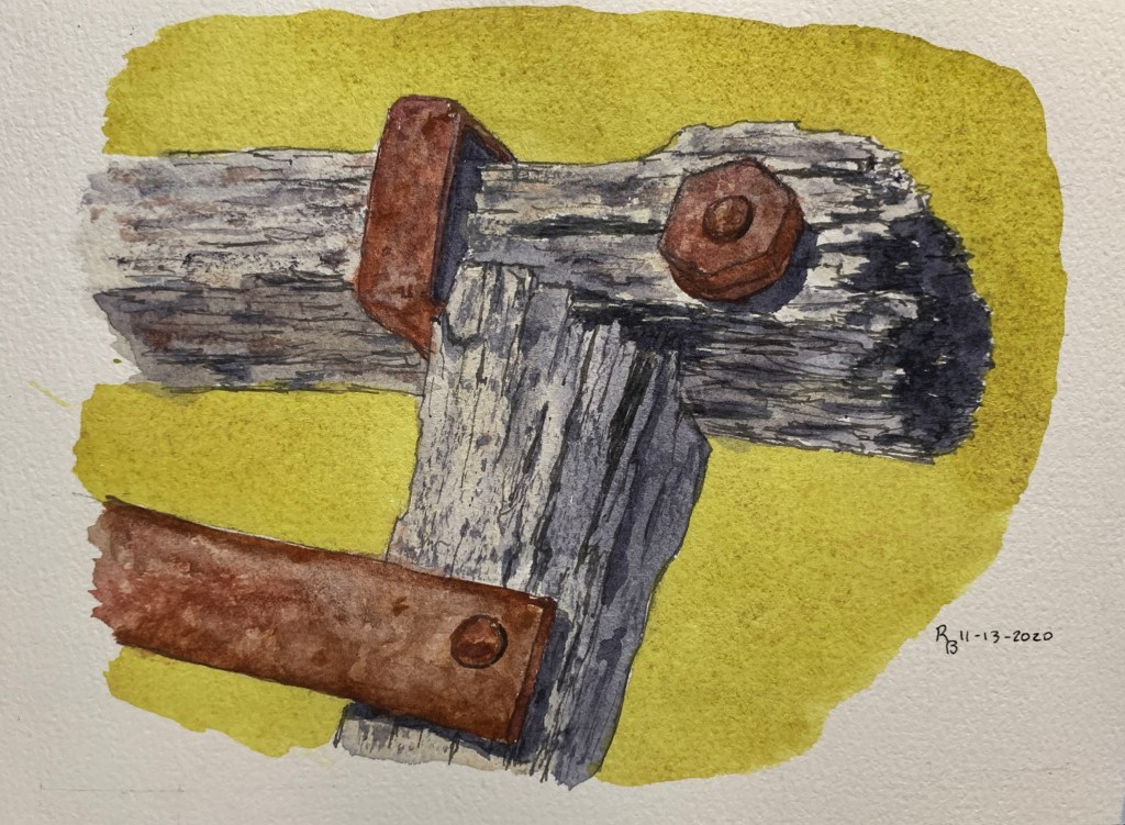 Old gate study – 5 by 7 inches – Ink and watercolor in Hahnemühle watercolor sketchbook – Jane Blundell Travel Sketching online class assignment (2020).
